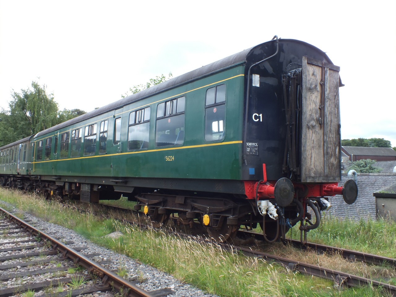 Preservation Information However in 1995 following a dispute, all of the East Kent Railway’s DMUs were sold, 56224 & 51572 being acquired by Railcar Enterprises and relocated to the Mid Norfolk Railway in 1996. By 1999, 56224 was running, and (with 51572 & 55006) formed the opening train to Wymondham on the MNR during May that year. In 2003 or 2004, 56224 was repainted out of Network SouthEast and into early blue with half yellow panel and white roof dome. In 2004 Railcar Enterprises moved to the Ecclesbourne Valley Railway, and 56224 was relocated there where it continued operating services. 51572 was sold on before the move and 56224 was partnered with Class 117 51360 at the EVR. In 2009 the vehicle received new batteries. In 2010, surplus to requirements, the vehicle was sold to the Keith & Dufftown Railway where it joined the other Class 108 vehicles there. 56224 proved useful as a flexible vehicle enabling others to be withdrawn for maintenance. The vehicle therefore had no fixed partner, being used in different sets as required, for example for much of the 2012 season, 50628 was in serice with 50628. Spring 2013 saw the vehicle repainted into BR Green to match the other vehicles resident on the line. For the following ten years, 56224 operated in traffic, normally paired with 50628. The vehicle now sees less use but operates as required if other vehicles are out of traffic for repairs. |