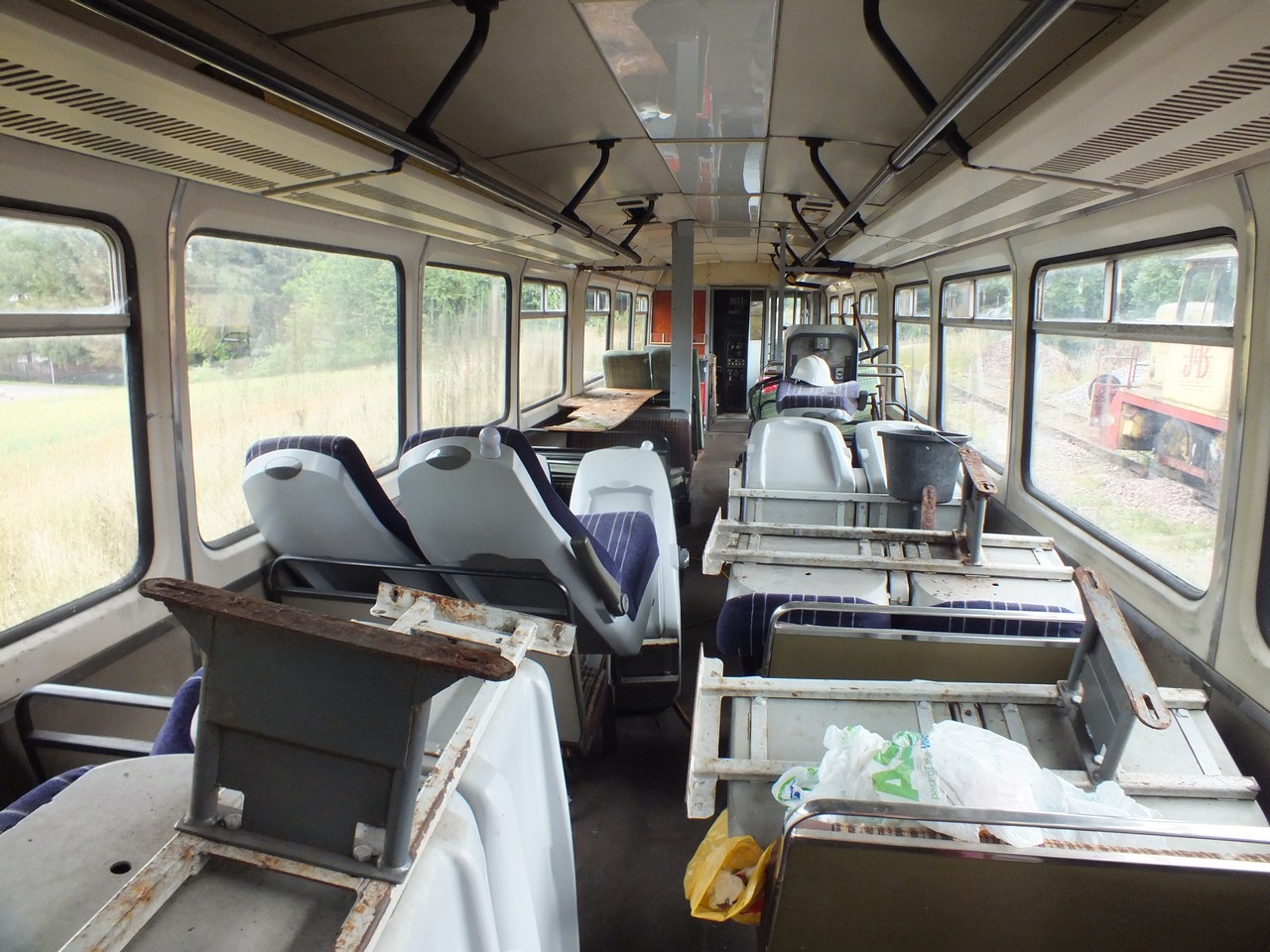 Preservation Information A lack of resources prevented any restoration work on 140001, which never entered preservation service, in the early 2000's being moved to the extremety of the line, the Dufftown headshunt, and made accessible on a static basis. The track leading to the vehicles was later disconnected. Other than occasional cleaning, the set continued its static role but was steadily deteriorating in condition. In March 2011, the area 140001 was stored in was required for redevelopment, and the set was recconnected to the rest of the world and moved the short distance into the main platform at Dufftown. This triggered renewed interest in it and the set was immediately heavily cleaned externally to improve its appearance in its new location. In 2012, a group of Keith & Dufftown Railway volunteers undertook some conservation/investigation work on 140001. Using a compressor the doors were sucessfully tested and the lighting on the set was also found to be operational. The engines were also started, 55500's being in good condition however 55501's had issues, so some spare parts were obtained to make a future revival practical. However the expertese to undertake the repair itself was not present at the time so mechanical revival of the set was stopped at that point. In May 2014, the cab end of 55501 was prepped and resprayed yellow, with the bodysides repainted during August 2015, in an effort to protect the exterior and further improve 140001's appearance, which had become poor up to that point. Despite the good progress, the restoration work sadly stalled shortly afterwards and 140001 was returned to storage in the sidings at Dufftown and proceeded to slowly deteriorate again. By 2025, work to restore the failed engine was progressing again, but steadily. The engine on the other vehicle (still fitted) remained in an operational state. |