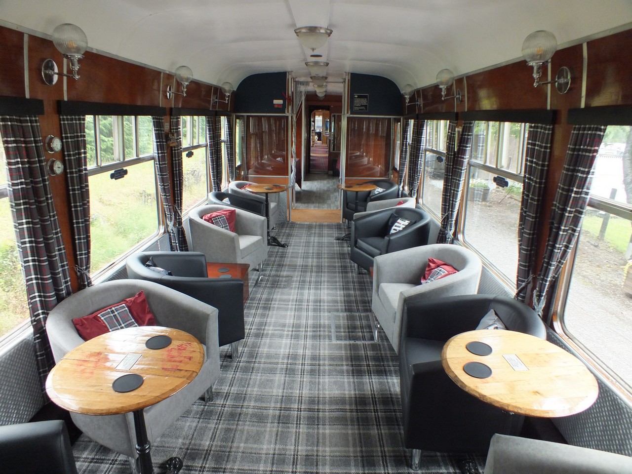 Preservation Information An engine replacement saw the unit operational very quickly. It was also repainted into BR Green livery and partnered with 52053 by Easter 1996. However the size of the fleet combined with the EARM's small running line resulted in 51568 not seeing much use. The vehicle, still paired with 52053, was put on loan to the then embryonic Keith & Dufftown Railwayin 2001, where it was named "Spirit of Banffshire". When DUPA decided to downsize their Class 108 fleet to one 2-car set, they disposed of 51568 and the vehicle was sold to long term custodians the KDR. Since 2010, the arrival of new vehicles and maintenance requirements meant that 51568 operated for some years with several different partners, drawn from 52053, 56224 & 56491 A repaint followed with the vehicle having a slight change when speed whiskers were applied to the front end. During 2025 the vehicle was heavily modified into a bar car, losing most of its original interior fittings. Lighting was replaced, luggage racks removed and side panels replaced. Curtains were added throughout. Original second class seating was turned 90 degrees and refitted into the former first class saloon, whilst the other two saloons lost all the original seating in favour of loose tables and armchairs. Tartan pattern carpets were fitted throughout the vehicle, and an open dancefloor created in the rear saloon. 51568 now runs regularly during the season as the "Dram Tram" paired with DTCL 56491. |