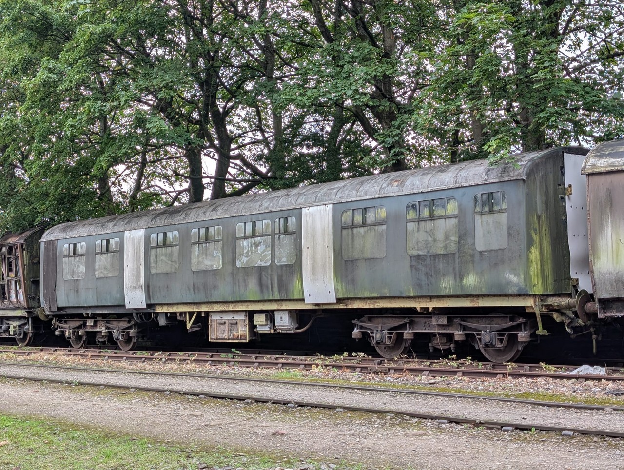 Work remaining includes the restoration and fitting of the ceilings, wood panelling, floor, lino, seating, interior & exterior doors and corridor connections plus underframe/bogie restoration.