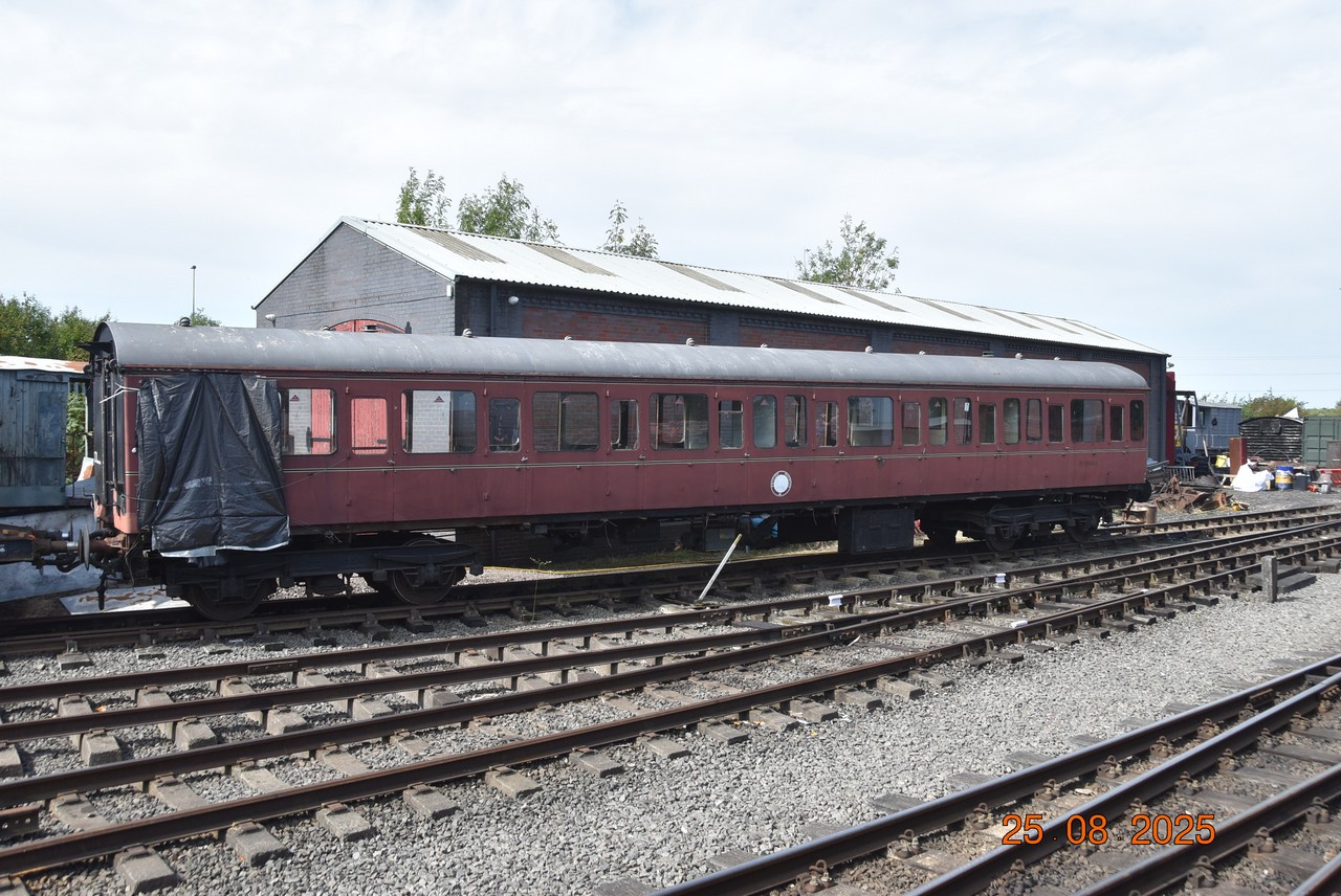 Preservation Information During the early 1990's the vehicle was painted into a non standard carmine & cream livery to suit its role as a hauled coach. It was paired with Class 117 DMBS 51372, also in use as hauled stock. The early 2000's saw the vehicle repainted again into maroon, another non standard livery more appropriate to loco hauled coaches. It is presumed that the vehicle has never spent a great deal of time out of traffic, photographic evidence suggesting that the vehicle has been a stalwart of the railway's operating passenger stock. Sometime between 2007 & 2010, partner 51372 was sold on. However, 59444 was joined by Class 127 59603 which was restored to run on a similar basis as 59444. In 2017 the vehicle was repainted, retaining its BR coaching stock maroon livery. However this time the vehicle was lined out rather than before when it just had a single colour. 59444 was withdrawn from traffic in 2022 and entered the sheds for a bodywork overhaul following many years without major attention. The gutters were removed from the vehicle and progress made on chopping out lower end corrosion and repalcing framework and skin. The overhaul has continued over several years. |